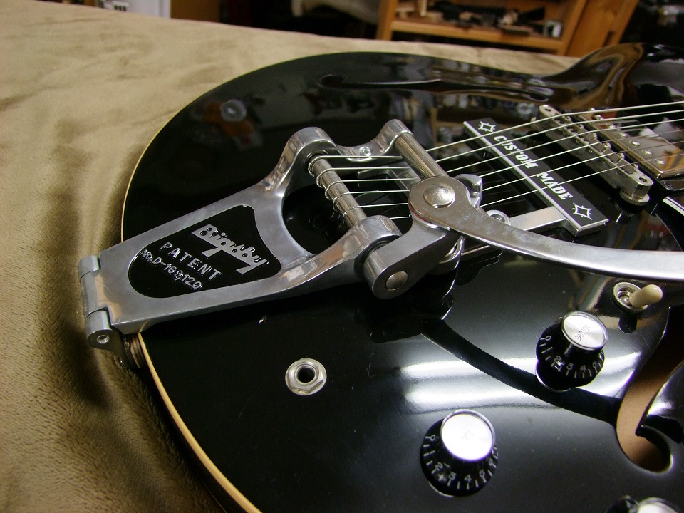 今回、持ち主様ご自身がVIBRAMATEを介してBigsbyを取り付けて使っていたGibson ES-335の不調の相談を受け、これの修正をHeavy Gauge GUitars似てやらせていただきました。