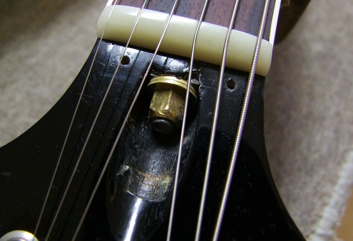 十分なトラスロッドの余裕がありますが、トラスロッドナット部のザクリが浅くネック調整用のパイプレンチが入りにくいのでスペーサーを2枚かませてトラスロッドナットをつけてあります。